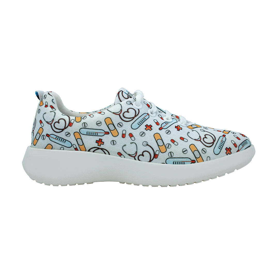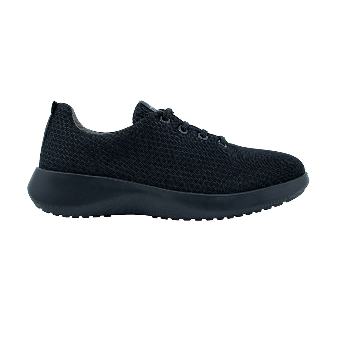 Os ténis profissionais WASH’GO SPORT RUBI foram desenvolvidos para quem exige conforto, leveza e proteção ao longo de todo o dia de trabalho, mas sem perder o estilo. Com design desportivo e funcional, combinam estilo moderno com a robustez necessária para o uso profissional. A gáspea em tecido técnico com tratamento repelente de água e detalhe em pele proporciona respirabilidade, frescura e proteção contra a humidade. O ajuste com atacadores adapta-se ao formato do pé, garantindo conforto firme e sem pressões. O contraforte reforçado assegura estabilidade adicional ao calcanhar, enquanto a sola em EVA ultraleve e aderente absorve impactos e oferece uma passada segura em diferentes superfícies. A palmilha amovível em espuma Arneflex, 100% transpirável, molda-se ao pé e mantém uma sensação de suavidade e frescura, mesmo após longas horas de uso. E, para maior praticidade no dia a dia, o modelo pode ser lavado na máquina a 30 °C, mantendo a higiene e o aspeto original do calçado. É o equilíbrio perfeito entre conforto profissional, estilo e praticidade.