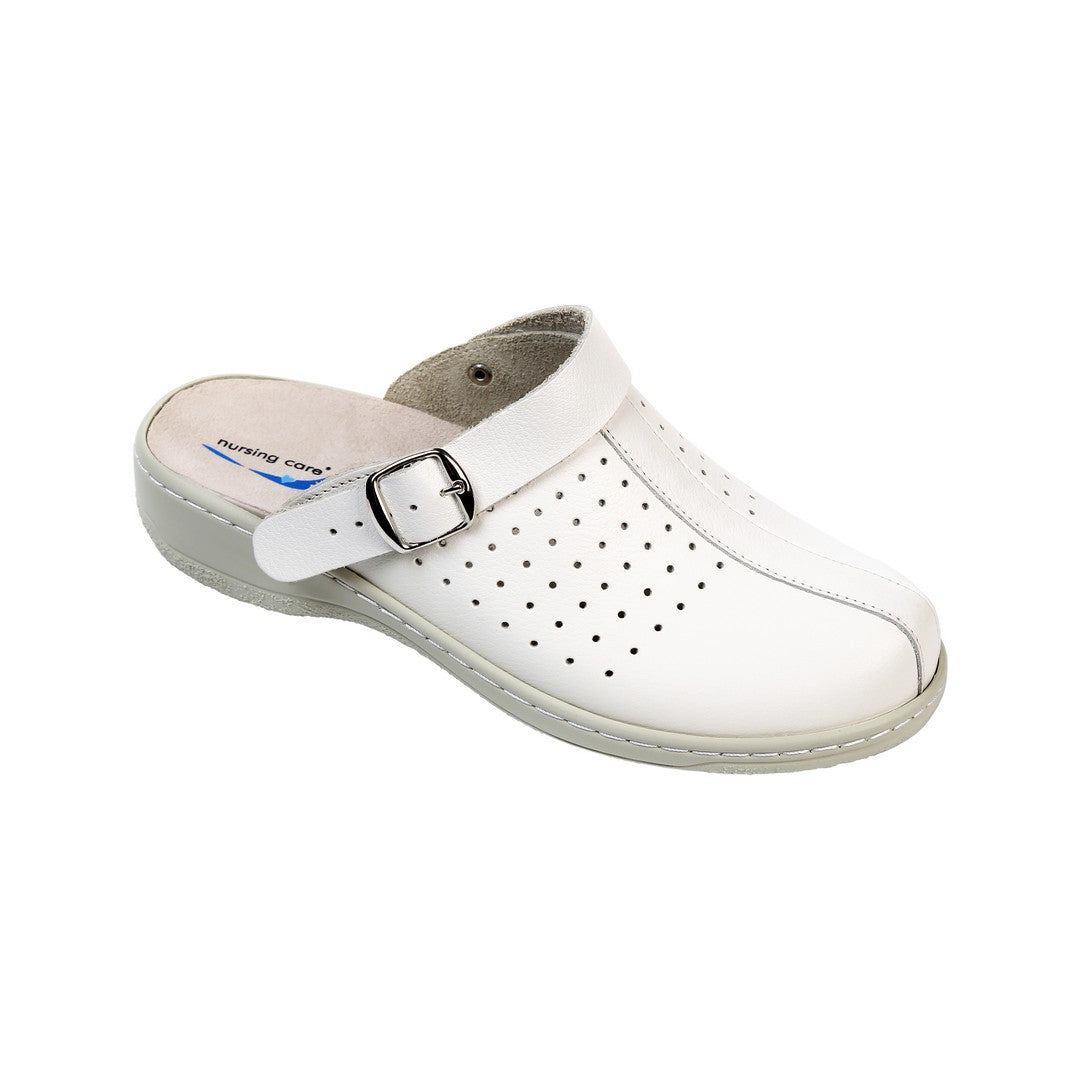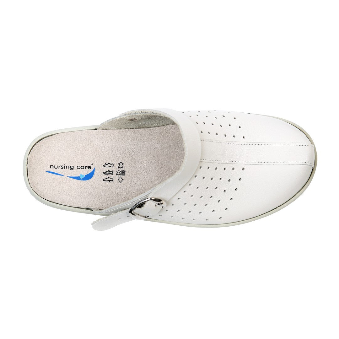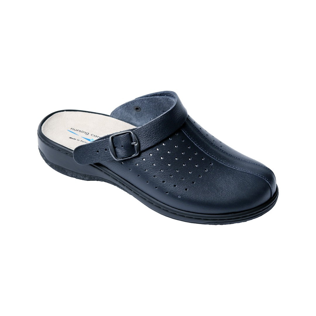 A soca de conforto MIRA combina simplicidade, bem-estar e funcionalidade, sendo ideal tanto para o uso profissional como para momentos de lazer. As palmilhas anatómicas ajustam-se suavemente à forma do pé, proporcionando apoio ao arco longitudinal e à zona metatársica, o que favorece uma pisada equilibrada e natural. As laterais perfuradas promovem uma maior ventilação interna, contribuindo para a regulação térmica e conforto prolongado durante o uso. A tecnologia de absorção de impacto reduz a fadiga e garante um caminhar mais leve e confortável, mesmo após longos períodos de utilização. Além disso, as palmilhas são amovíveis, facilitando a higiene e permitindo a sua substituição sempre que necessário.