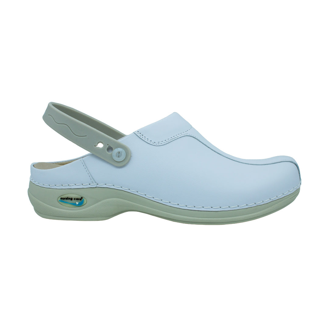 As socas profissionais Wash'Go MADRID foram desenvolvidas para oferecer o equilíbrio ideal entre conforto e resistência para quem enfrenta longas jornadas em pé. O seu design anatómico, aliado à palmilha ergonómica e ao acabamento em pele natural, permitem a adaptação ao pé desde o primeiro uso, garantindo leveza e suporte ao longo de todo o dia. Apesar de serem fabricadas em pele natural, podem ser lavadas na máquina a 30 °C, mantendo o aspeto e a qualidade originais sem perder a sua forma. A presilha ajustável no calcanhar oferece maior estabilidade e segurança a cada passo, permitindo um ajuste perfeito ao pé. A sola leve e antiderrapante proporciona estabilidade mesmo em pisos escorregadios, enquanto os materiais respiráveis ajudam a preservar o conforto térmico em qualquer rotina. Pensadas para profissionais das áreas de saúde, hotelaria, estética e serviços, as Wash'Go MADRID combinam desempenho técnico e estilo em cada detalhe.
